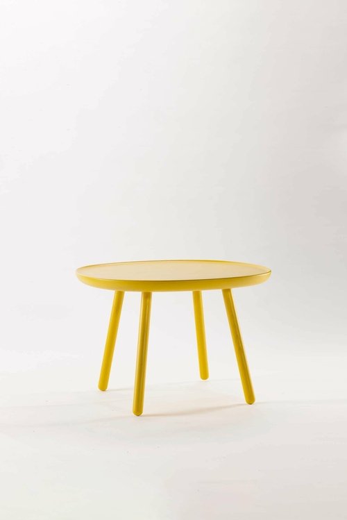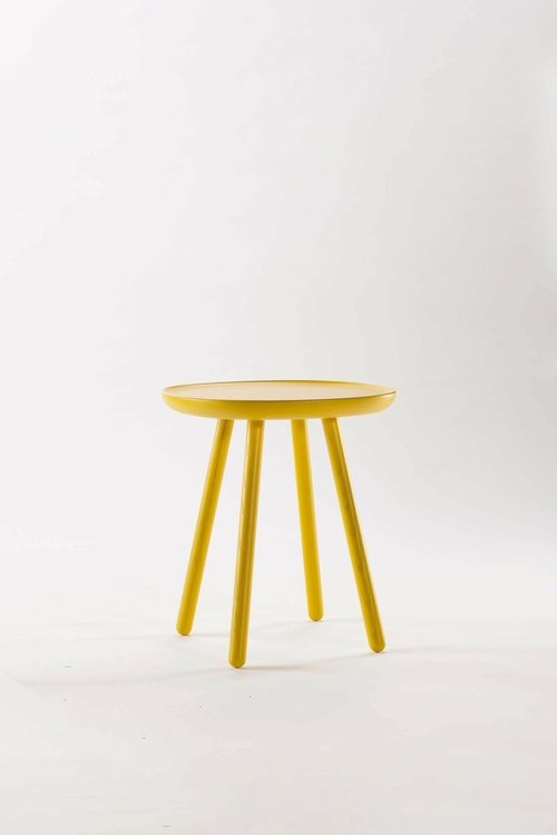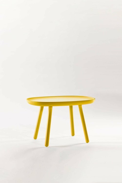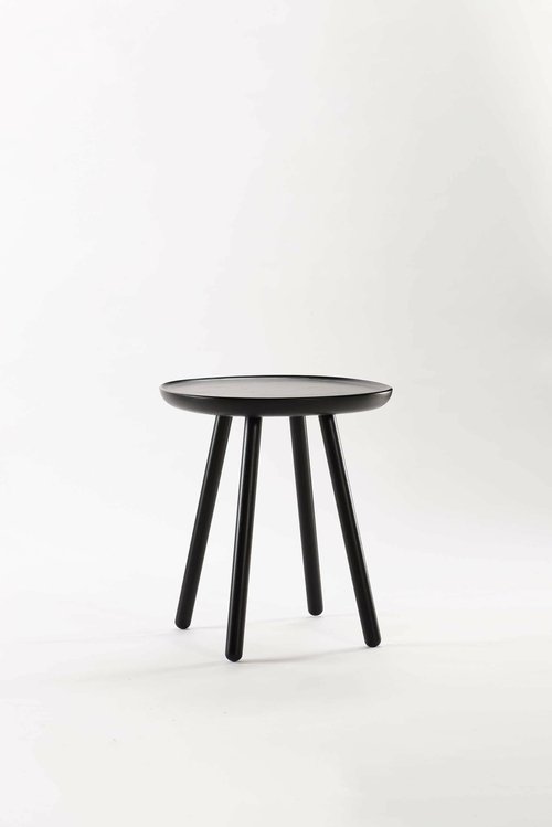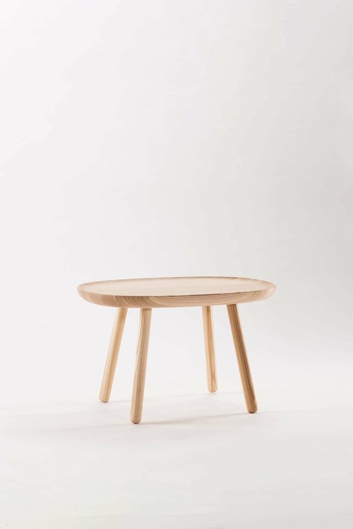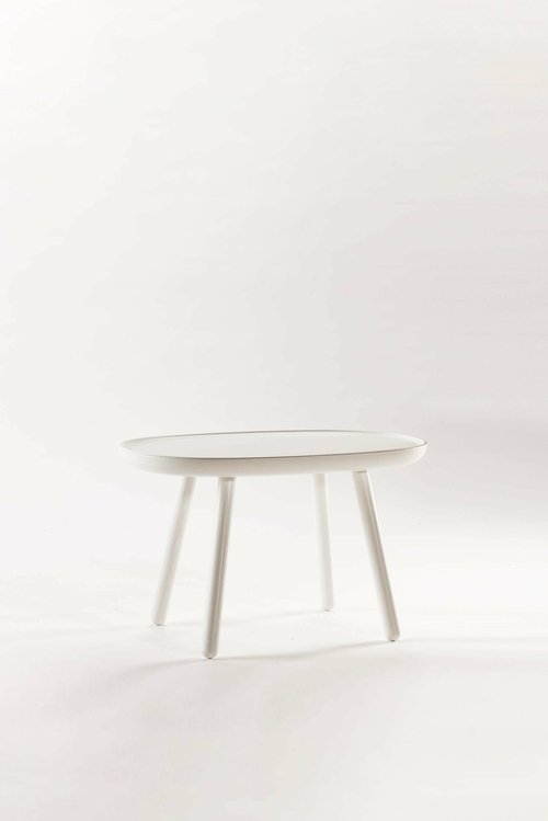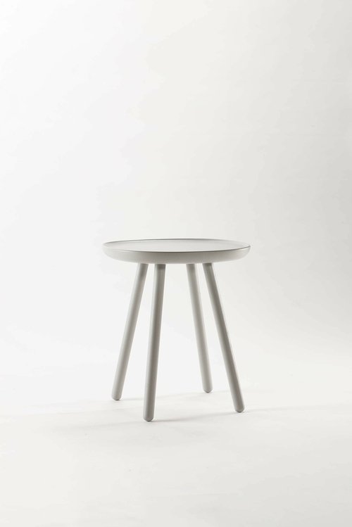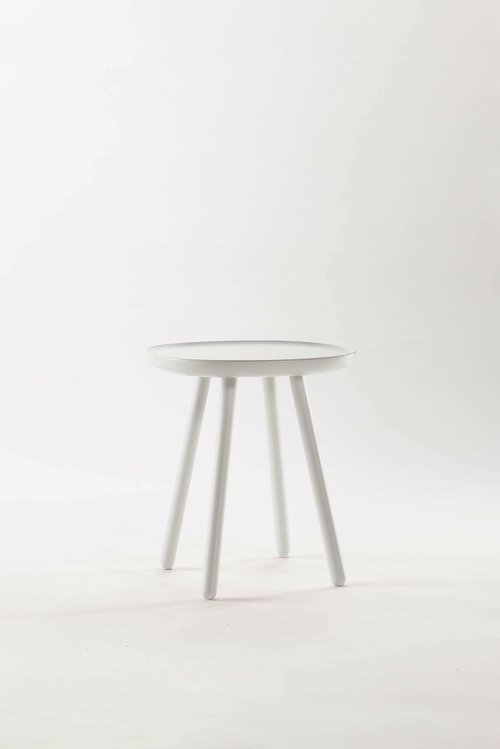 Naive side tables are available in 3 sizes, each carved out of a single piece of solid ash. A form in between a square and a circle creates a soft and welcoming appearance and will easily adapt to any type of room. The tables can be easily assembled by just screwing the legs in. The tables work well on their own, or all three together.